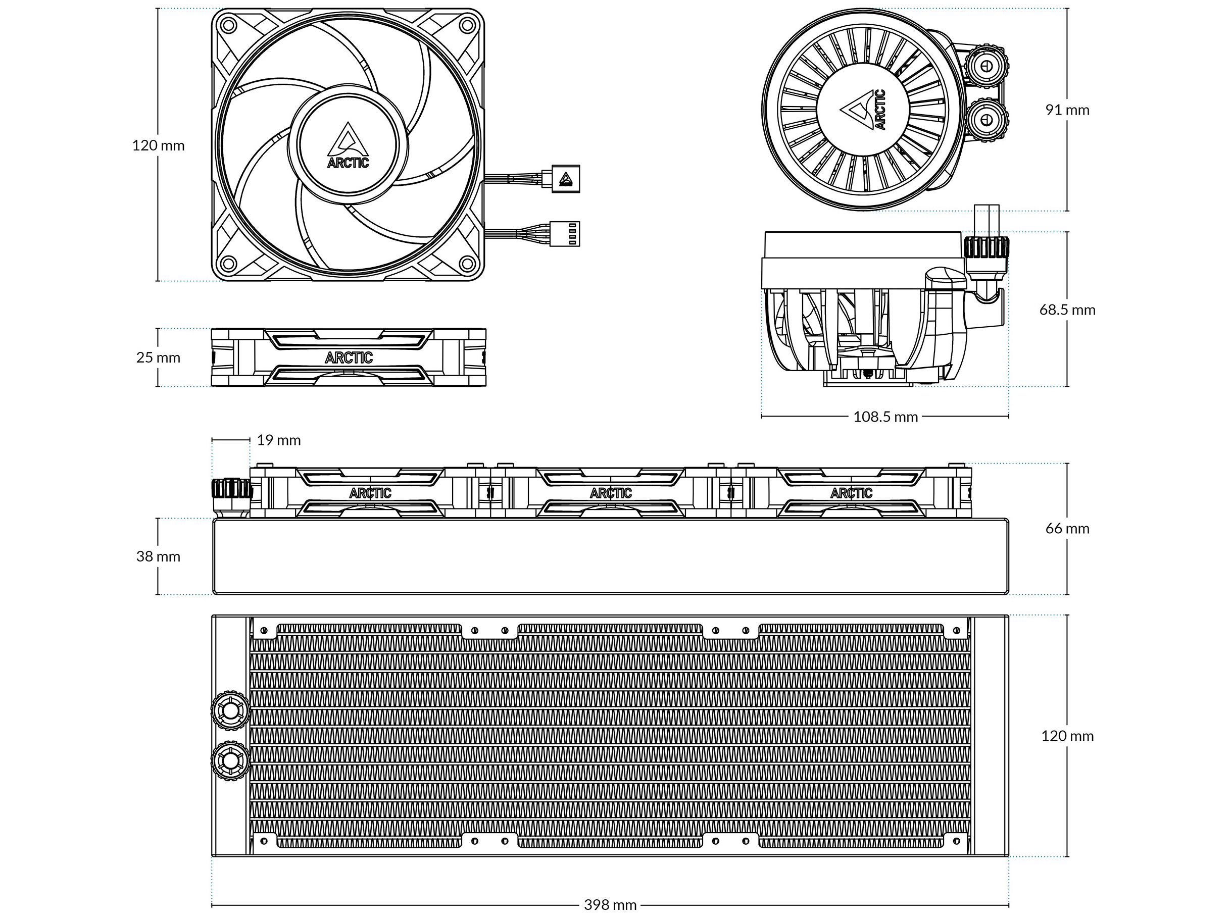 | Størrelse på flydende kølemiddelradiator | 360 mm |