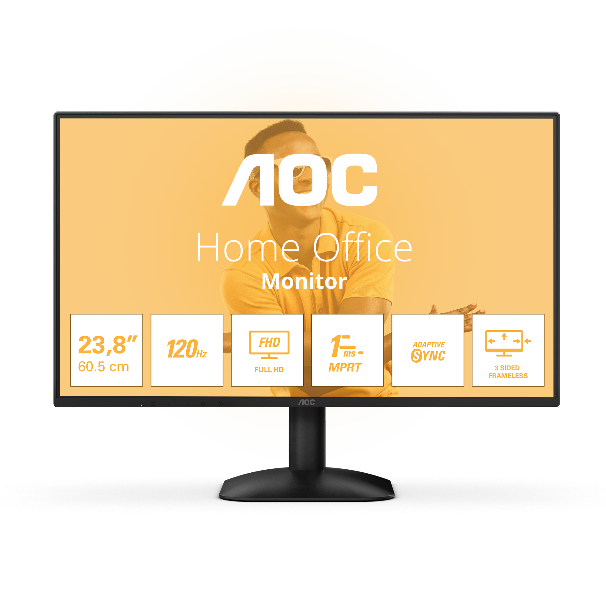 AOC 24B31H har en 24" Full HD-skærm med en opdateringshastighed på 120 Hz, 1 ms MPRT og Adaptive Sync for glatte og responsive billeder. Forbedret med lavt blåt lys, flimmerfri teknologi og et 3-sidet rammeløst design, sikrer det øjenkomfort og en fordybende seeroplevelse.