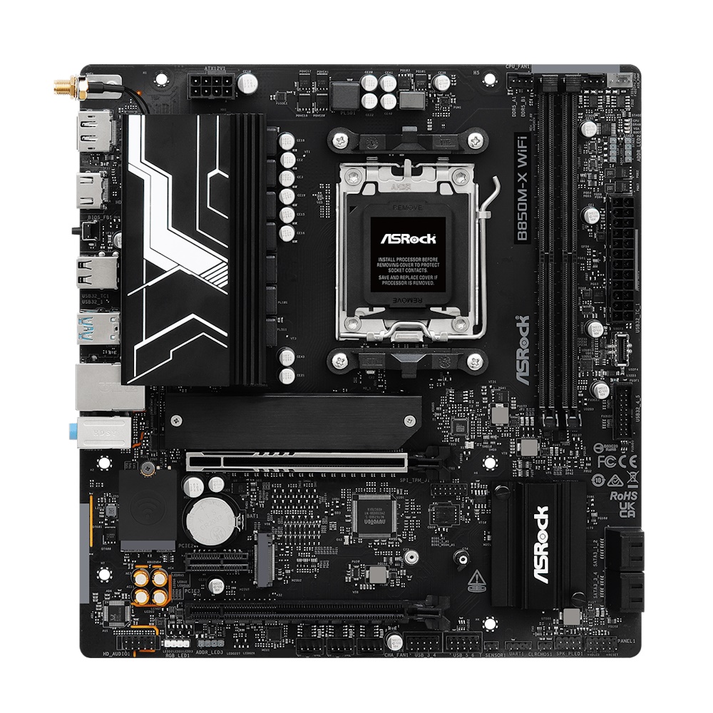 Asrock B850M-X WIFI R2.0 - Bundkort - Micro ATX - Socket AM5 - AMD B850 Chipset - USB 3.2 Gen 1, USB-C 3.2 Gen 1 - 2.5 Gigabit LAN - onboard grafik (CPU påkrævet) - HD Audio (8-kanaler)