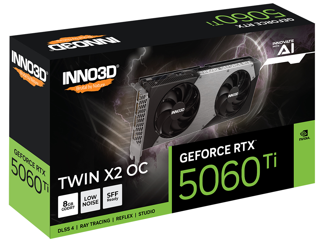 | Produktbeskrivelse | Inno3D GeForce RTX 5060 Ti 8GB TWIN X2 OC - grafikkort - GeForce RTX 5060 Ti - 8 GB |