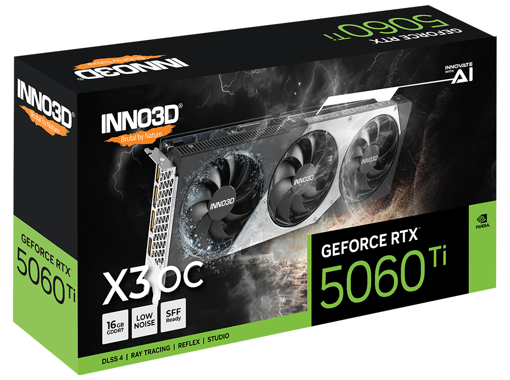 | Produktbeskrivelse | Inno3D GeForce RTX 5060 Ti 16GB X3 OC - grafikkort - GeForce RTX 5060 Ti - 16 GB |