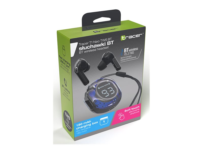 | Produktbeskrivelse | Tracer T1 Neo - ægte trådløse øretelefoner med mik. |