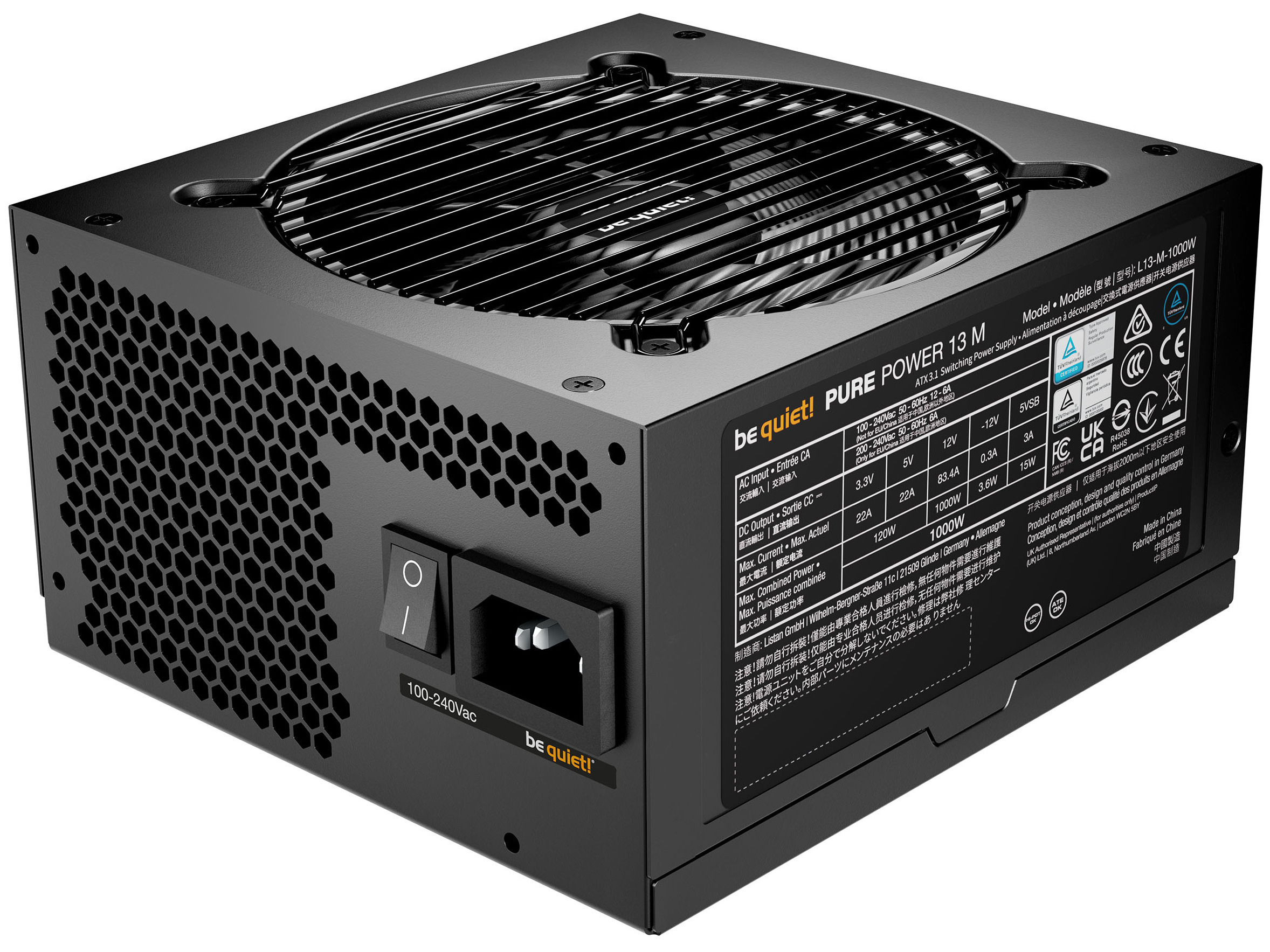 be quiet! Pure Power 13 M 1000W - Strømforsyning (intern) - ATX12V 3.1/ EPS12V 2.92 - 80 PLUS Gold - AC 100-240 V - 1000 Watt - Europa - sort