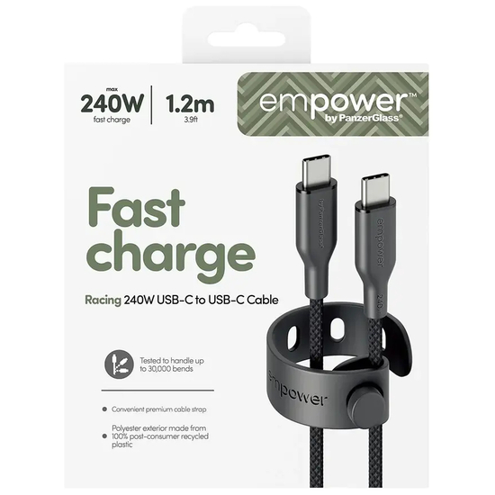 empower by PanzerGlass Racing - USB-kabel - USB-C (han) til USB-C (han) - 1.2 meter - 240 Watt - sort