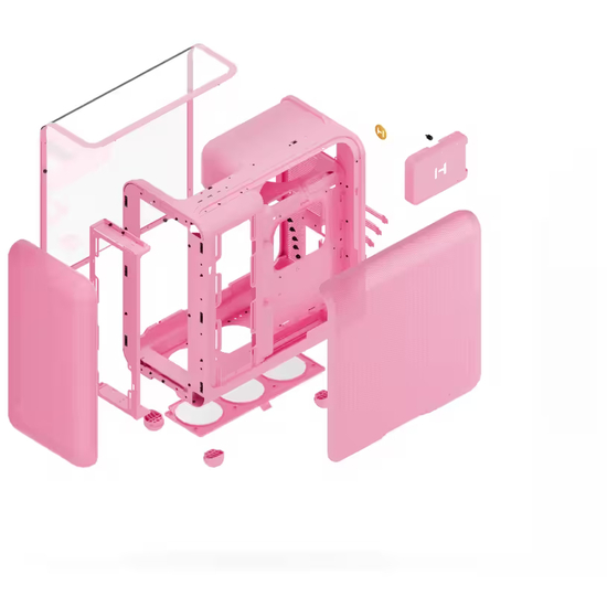HYTE X50 - Mid tower - udvidet ATX - sidepanel med vindue (glas) - ingen strømforsyning (ATX) - jordbærmælk - USB/Lyd