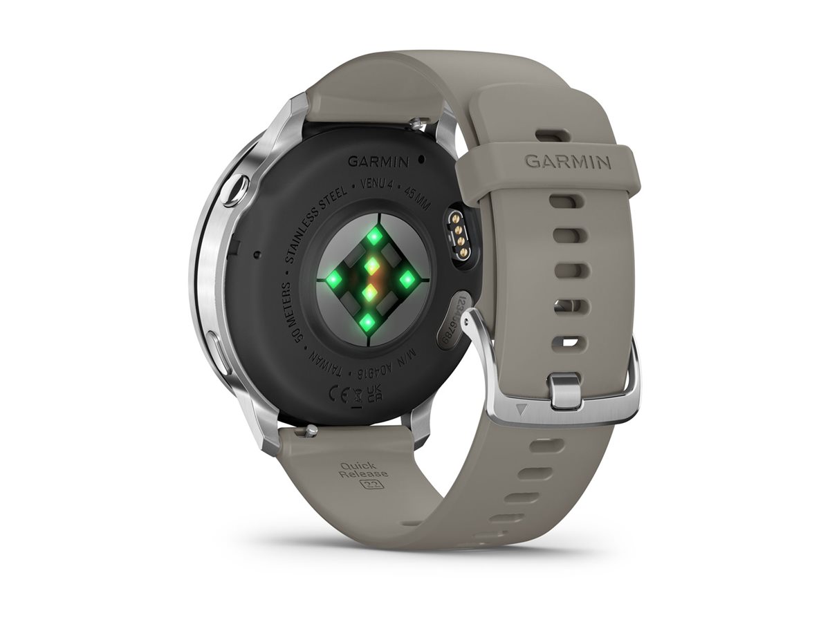 Garmin Venu 4 - 45 mm - sølv - smart ur med bånd - silikone - sølvgrå - håndledsstørrelse: 135-200 mm - display 1.4" - 8 GB - Bluetooth, ANT+, Wi-Fi - 38 g