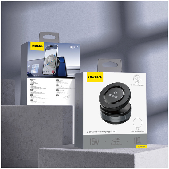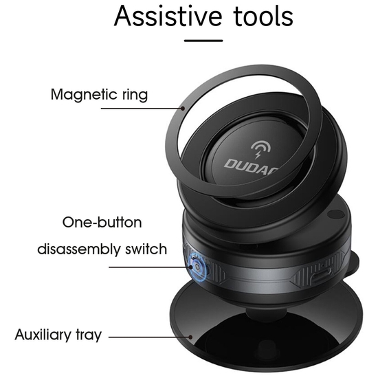 Dudao - Trådløs opladerholder til bil - 15 Watt - elektrisk sugekop - sort