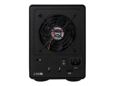 ThunderBay IV har et holdbart aluminiumskabinet, der beskytter de fire interne drev, samtidig med at det holder dem kølige takket være den overlegne varmeafledning. En låsbar frontplade holder drevene sikre.