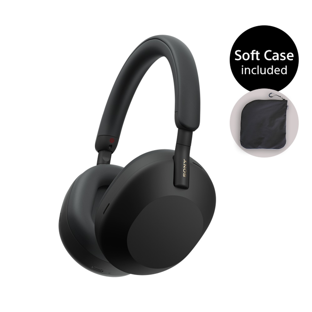 Sony WH-1000XM5SA - Hovedtelefoner med mik. - fuld størrelse - Bluetooth - trådløs, kablet - NFC - aktiv støjfjerning - 3,5 mm jackstik - sort