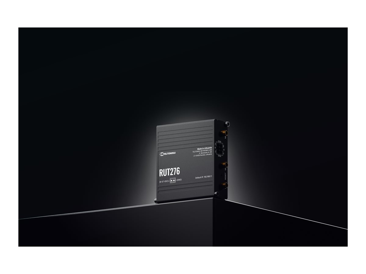 | Produktbeskrivelse | Teltonika RUT276 - trådløs router - WWAN - LTE, Wi-Fi - 5G, 4G - DIN monterbar på skinne, væg-monterbar, overflademonterbar |