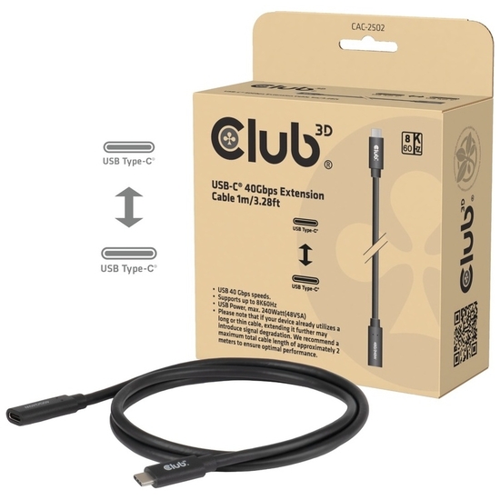 CLUB3D CAC-2502. Kabellængde: 1 m. Stik 1: USB C, Stik 2: USB C, Produktfarve: Sort