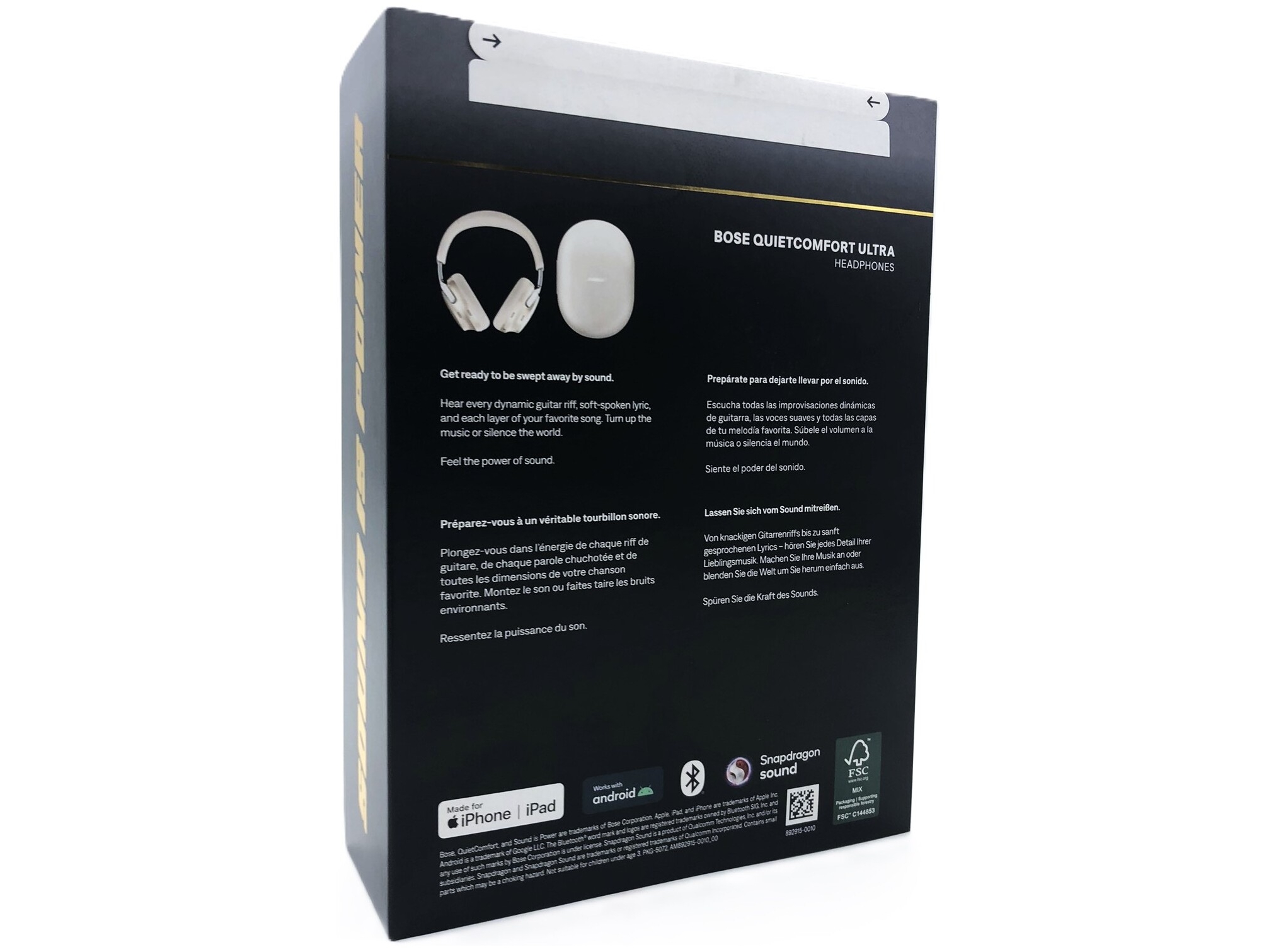 Fremragende støjreduktion, mere støjsvag end nogensinde før. Banebrydende rumlig lyd til fordybende lytning, uanset indhold eller kilde. Højt design og luksuriøse materialer for uovertruffen komfort. Det er alt, hvad musik får dig til at føle, taget til ekstra højder. Bose Immersive Audio skubber grænsen for, hvad det vil sige at lytte, ved at tage det, du hører, ud af dit hoved og placere det foran dig. Det lyder så ægte, at det næsten er, som om du kan række ud og røre ved det.