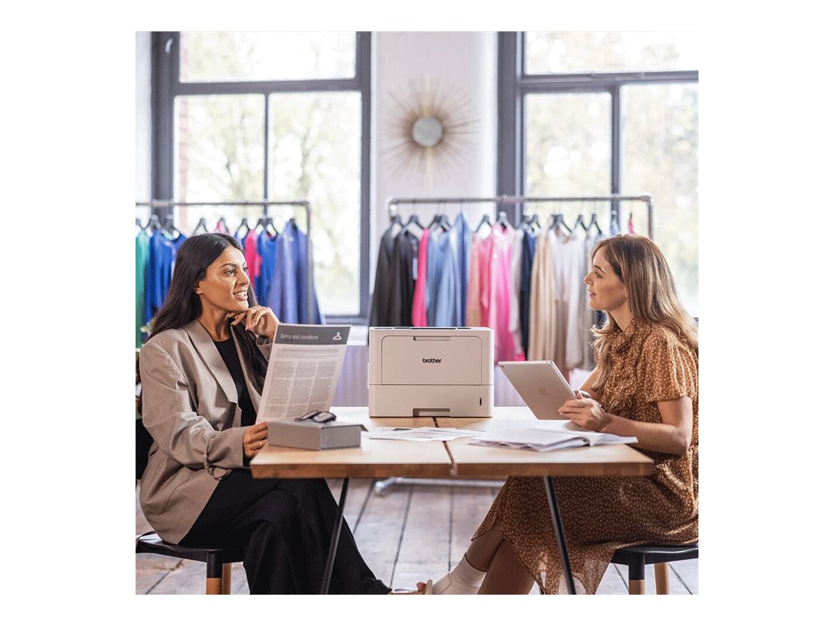 HL-L5210DN fås som en stationær printer med lav profil, hvis papirkapacitet kan øges ved at tilføje valgfrie bakker for optimal produktivitet.