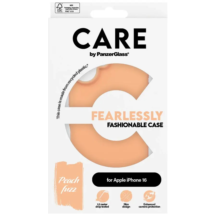 Fearlessly Fashionable, BABY! Et virkelig smukt og beskyttende cover for de modige og stilsikre. Opgrader din mobil og dit outfit med CARE by PanzerGlass . Det ultimative møde mellem bæredygtighed, sikkerhed og personlig stil. Vores kvalitetscovere er designet til at fuldende dit udtryk og rykke grænserne for beskyttelse – og samtidig holde dig på forkant af de nyeste modetrends. Care by PanzerGlass fremhæver din personlige stil, så du står skarpt og sikkert. Med sit slanke design og lækre overflade får du den perfekte kombination af æstetik og komfort – og et sikkert greb om din mobil. Den optimerede kamerabeskyttelse hjælper dig med at passe ekstra godt dine minder. Forbinder nemt til alle dine MagSafe-enheder og sikrer, at du altid er opladet og klar. Hos PanzerGlass er vi meget optaget af design og nytænkning. Men vi insisterer også på at tage ansvar og gøre en forskel i verden. Derfor fremstiller vi blandt andet vores covere af genbrugsmateriale og dokumenter vores miljøindsats med verificerede tal og fakta. Så du altid kan stole på det, vi siger. DARE TO CARE Care er et internationalt livsstils- og techbrand, kendt for sit legende og ansvarlige design. Skabt af de bedste materialer og inspireret af de nyeste trends inden for mode, kunst og musik. Med CARE tager vi ansvar for mennesker og den verden, vi lever i. Vi understøtter bæredygtighed og dit personligt udtryk – og forlænger dine enheders holdbarhed. Opgrader din mobil til en stilsikker og godt beskyttet accessory. Vis verden, at du tager ansvar. Dare to care.