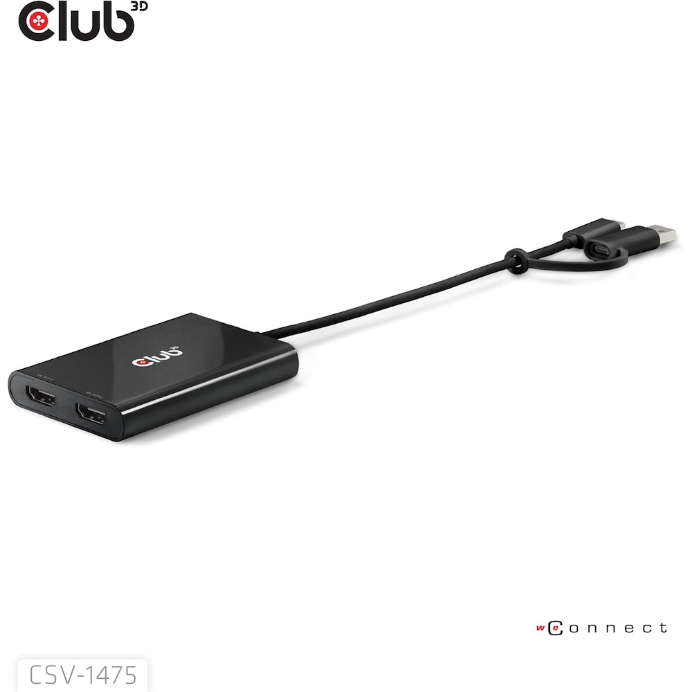 Club3D CSV-1475 USB-C / USB-A til 2x HDMI DisplayLink Adapter 4K 60Hz