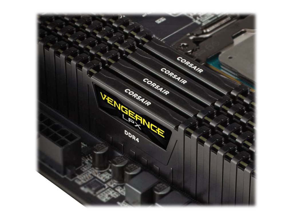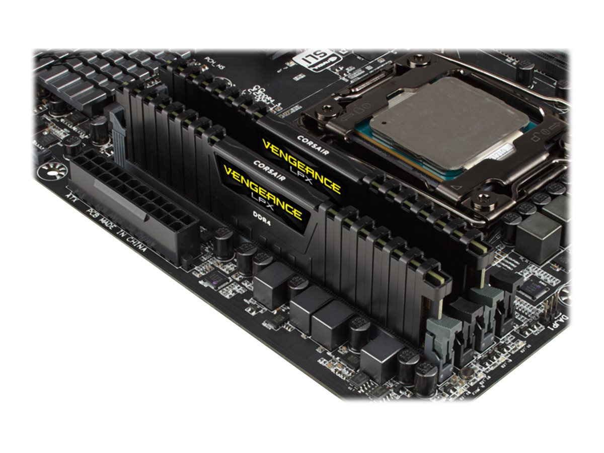 | Egenskaber | Dobbeltkanal, 8 lags PCB varmespreder, anodized aluminum heatspreader, Intel Extreme Memory Profiles (XMP 2.0), Vengeance LPX low profile heatspreader, ikke bufferet |
