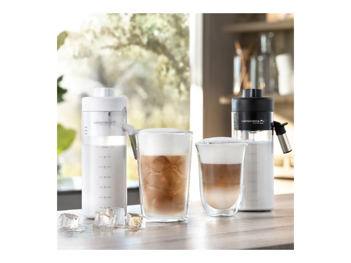 LatteCrema Hot and Cool er de eksklusive De'Longhi-teknologier, der automatisk leverer et cremet, langtidsholdbart skum ved den rigtige temperatur, med mælkeprodukter eller endda plantebaserede drikke ved bare et tryk på en knap. LatteCrema Hot blander damp, luft og mælk for automatisk at levere cremet, varm mælkeskum med flere forskellige skumniveauer... indtil den allersidste dråbe! LatteCrema Cool fremhæver de søde noter af mælk perfekt, mens den holder den kølig, for den mest cremede kolde kaffeoplevelse hele året rundt. Begge kander er udstyret med et automatisk rengøringssystem, og alle deres komponenter tåler opvaskemaskine, så de er nemme at rengøre, og der er et ekstra hygiejneniveau.