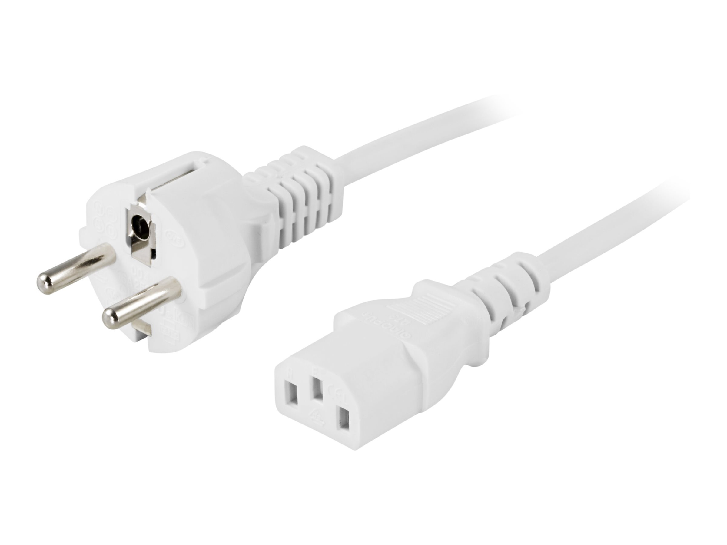 DELTACO jordet apparatkabel for tilslutning mellem enhed og vægudtag,ret CEE 7/7til ret IEC 60320 C13, maks 250V/10A, 5m, hvid.