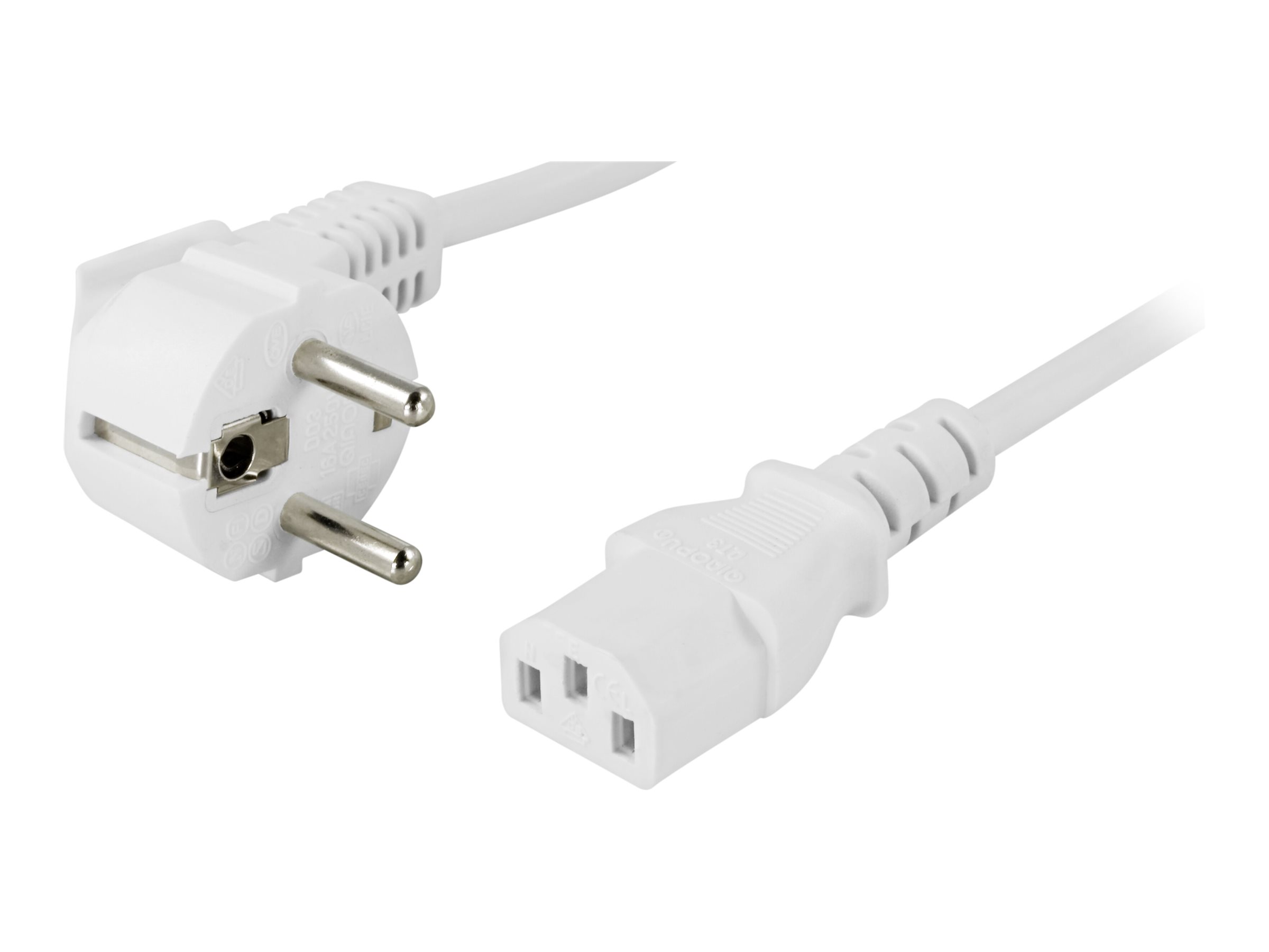 DELTACO jordet apparatkabel for tilslutning mellem enhed og vægudtag,vinklet CEE 7/7til ret IEC 60320 C13, maks 250V/10A, 5m, hvid.