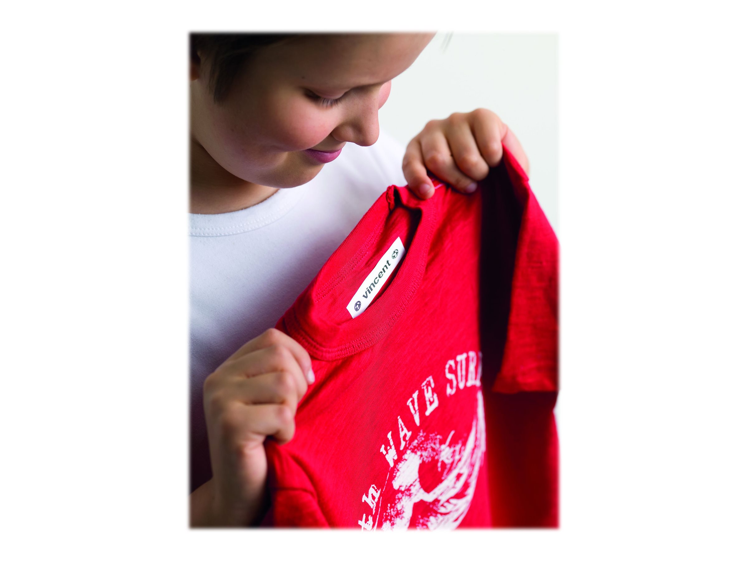 Ikke mere påsyning af mærker i tøj, på håndklæder eller rygsækkens indhold. Du skal blot udskrive en etiket og stryge den direkte på tøjet.