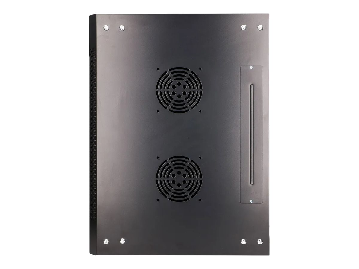 Egenskaper Övre och undre kabelingångspunkter, 180 graders dörröppning, dörr i tempererat glas, borttagbara sidopaneler, welded frame, 2 hål för fläktar upptill