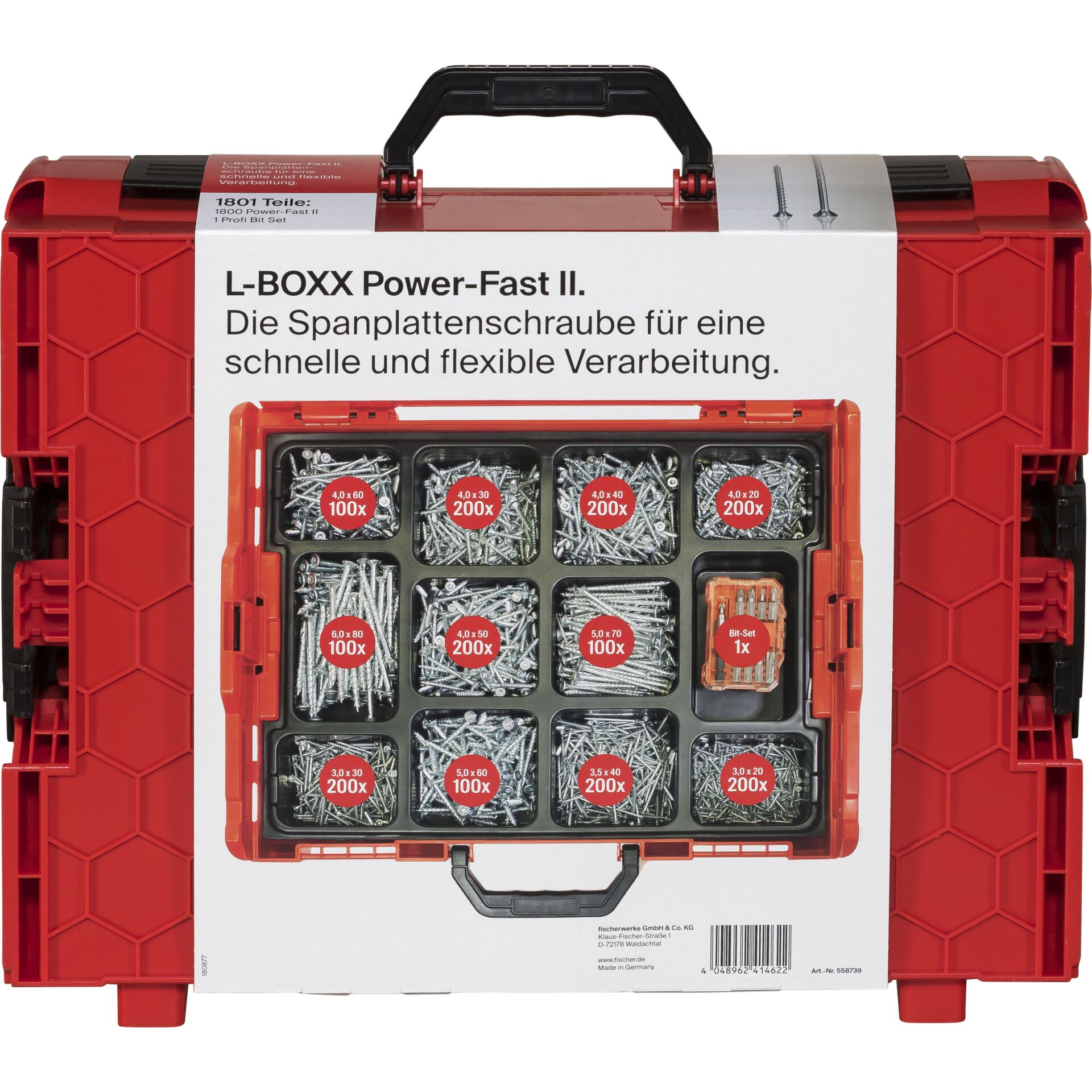 Fischer Organizer Boks Power Fast L-boxx - 1801 Dele - Sølvfarvet