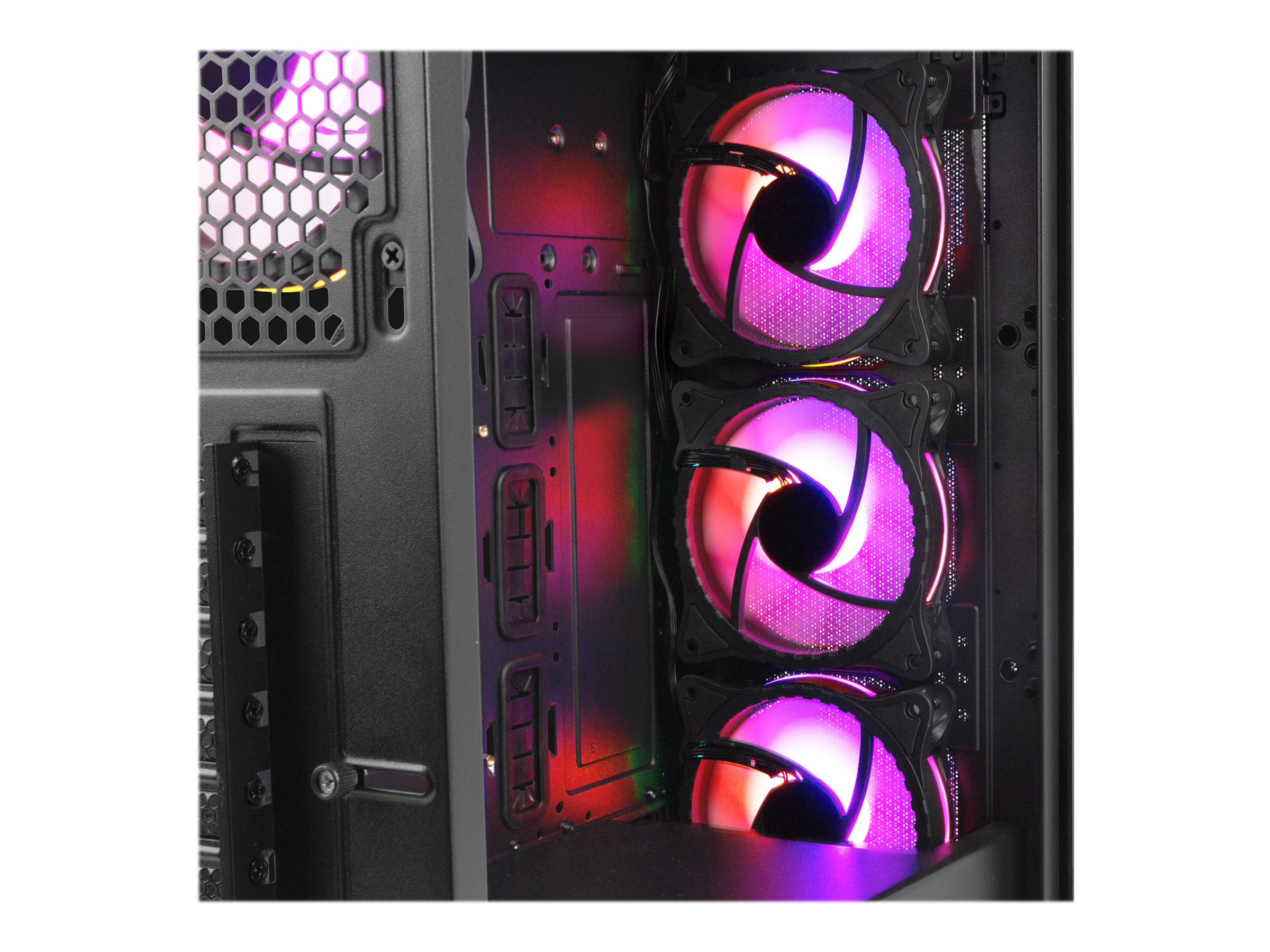 | Kylsystem | Front: 120 mm fläkt x 3 / ARGB-fläkt, 3 x 120, 2 x 140 mm fläkt stöds | Bakre: 120 mm fläkt x 1 / ARGB-fläkt | Ovansidan: 120/140 mm fläktmontering x 2 |