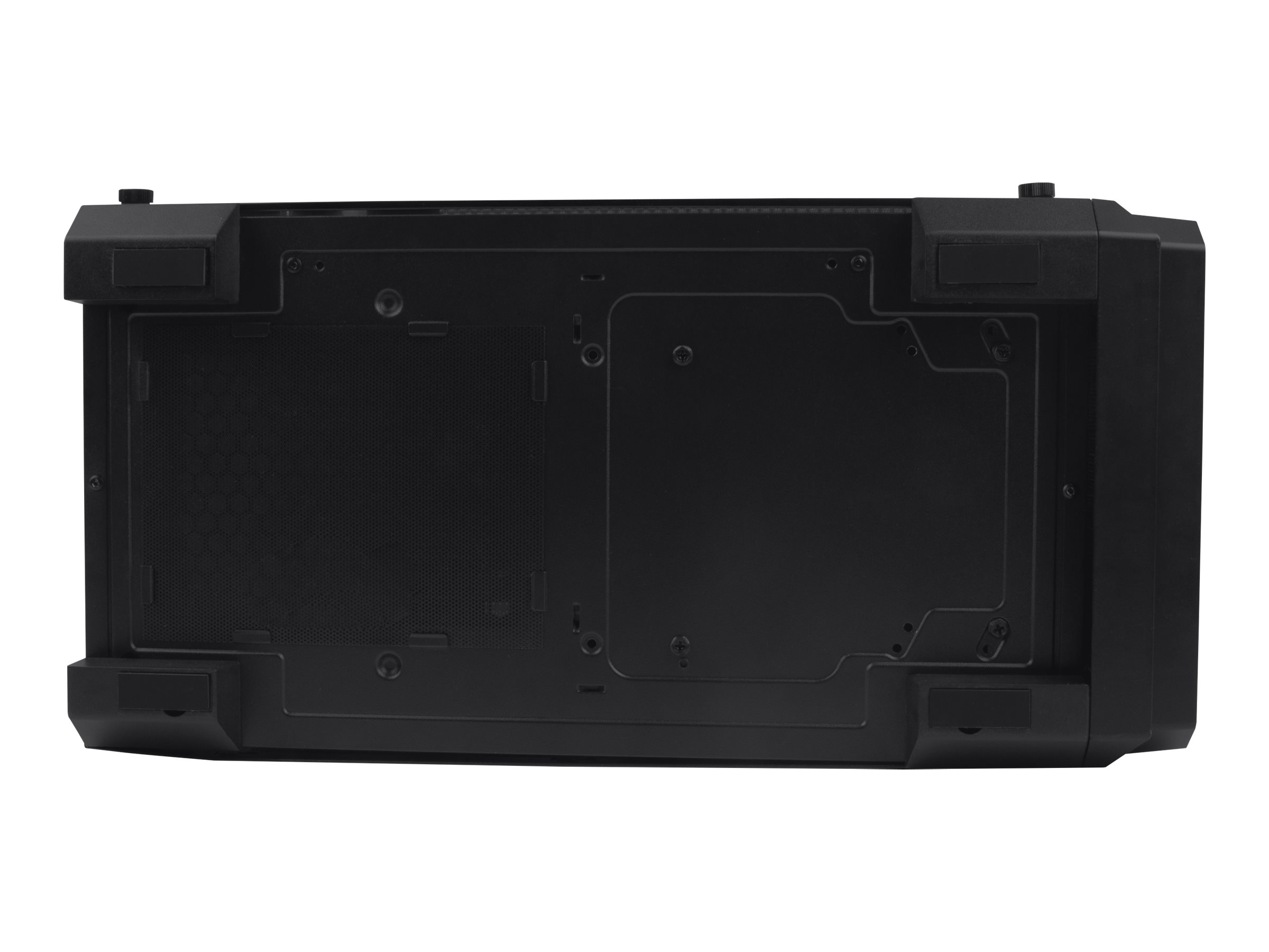 | Egenskaper hos systemkabinett | Dammfilter till överdel, frontpanel med nät, främre dammfilter, nedre dammfilter, Föreredd för vätskekylning, stöder 120/140/240/280 mm element i främre panel, stöder 120/140/240/280 mm element högst upp, PSU-hölje |