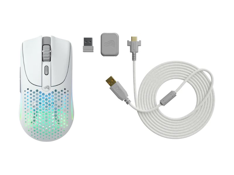 Model O 2 Wireless har både 2,4 GHz- og Bluetooth 5.2 LE-grænseflader og sikrer en pålidelig, forsinkelsesfri forbindelse. Den medfølgende trådløse USB-modtager og kabler giver mulighed for nem opsætning og tilslutning.