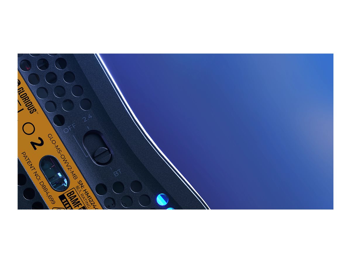 | Egenskaber | 6 programérbare knapper, RGB 16,8 millioner flerfarvet belysning, bikageskal-kabinet, 1 - 2 mm løft-af distance, PTFE-musefødder, Glorious BAMF 2.0 sensor, Glorious Switches, Glorious Core-klar |