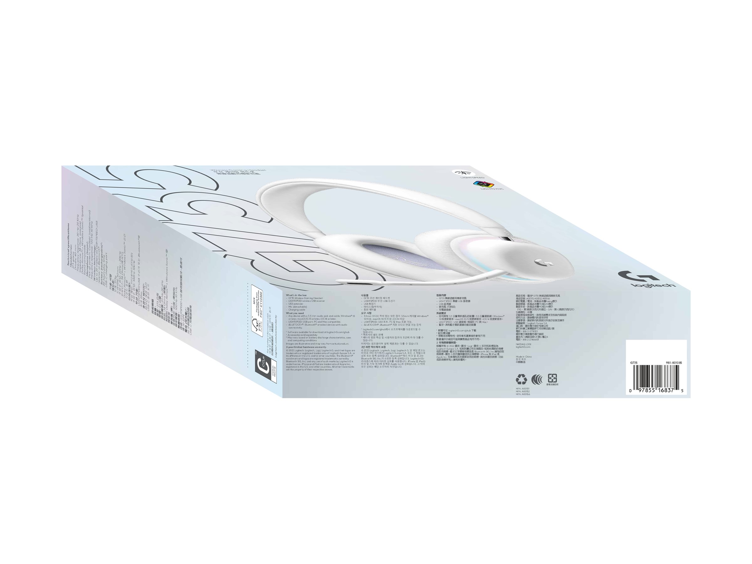 G735 i Aurora-serien maksimerer komforten for alle spillere, også dem med mindre hovedstørrelser. Spil afslappet med skyblød hovedbøjle og ørestykker, der kan drejes. Det passer perfekt til pc‹er og mobilenheder med trådløs LiGHTSPEED og Bluetooth . Fås i White Mist. Farvetilbehør sælges separat.
