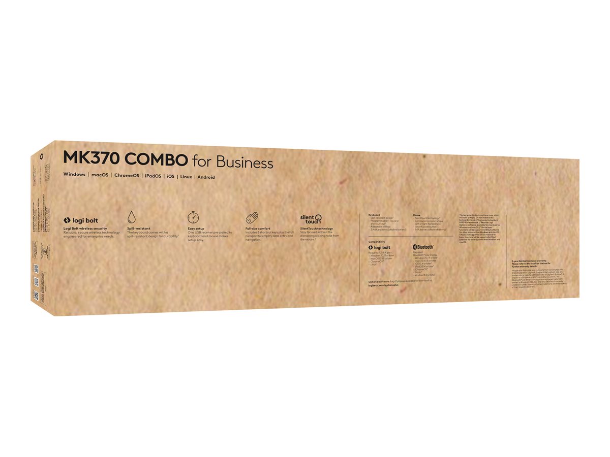 MK370 Combo for Business er den perfekte kombination af trådløs mus og tastatur, der får alle til at arbejde mere komfortabelt. Nu klar til virksomhedsbrug med sikker Logi Bolt-teknologi