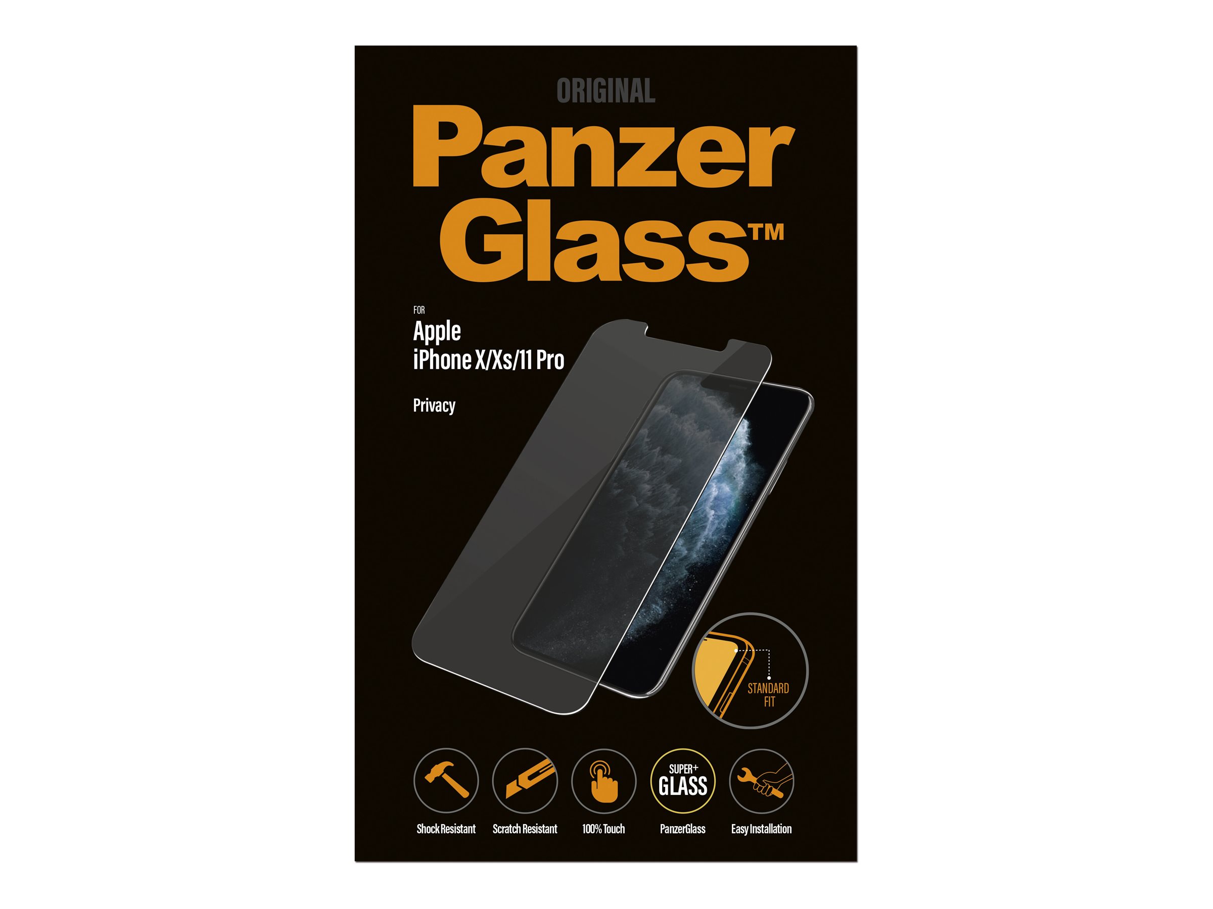 Private beskeder. Bankoplysninger. Pinkoder. Med denne skærmbeskyttelse kan du skjule dine hemmeligheder mod nysgerrige øjne hos folk, der sidder ved siden af dig i toget, i bussen eller på kontoret. Det specialdesignede privatlivsfilter gør indholdet på skærmen praktisk talt usynligt for alle andre end dig.Utilsigtede bump mod skarpe genstande i lommen eller drop på stenhårdt underlag er heller ikke noget problem for denne skærmbeskyttelse, der er modstandsdygtig over for ridser og stød. Den har endda en fingeraftryksafvisende overfladebehandling med antibakteriel effekt, der reducerer spor af fedtfingre og dræber op til 99,99 % af alle almindelige overfladebakterier. Skærmbeskyttelsen Standard Fit dækker den aktive del af din skærm.