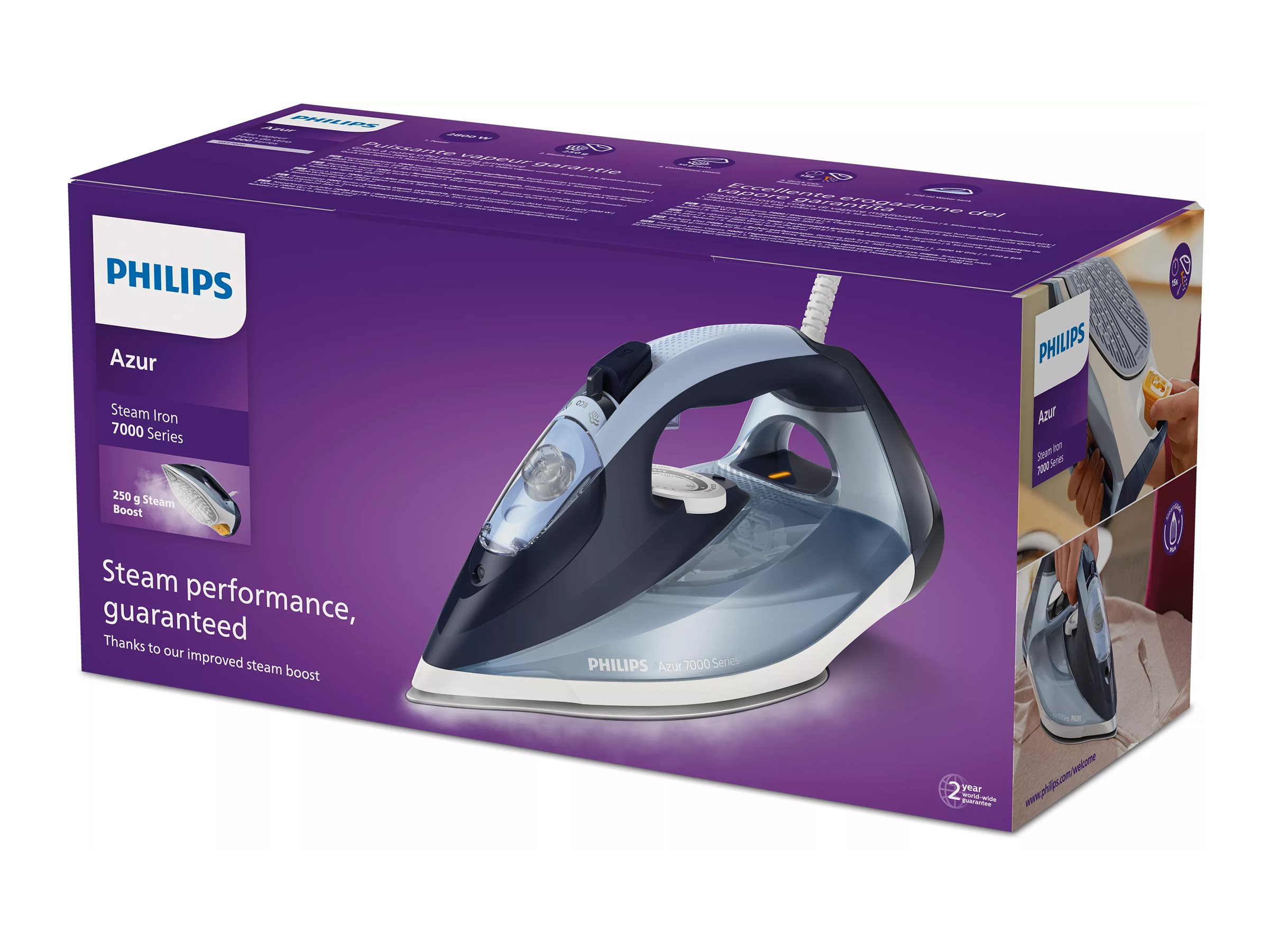 | Produktbeskrivelse | Philips Azur 7000 Series DST7020 - dampstrygejern - såleplade: SteamGlide Plus |