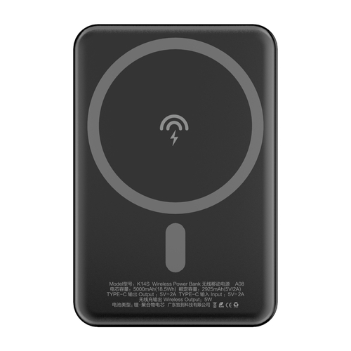 Dudao - Wireless Powerbank - 5000 mAh - 10 Watt - 2A - MagSafe kompatibel - 2 output-stikforbindelser (USB-C x1, USB Micro x1) - Black