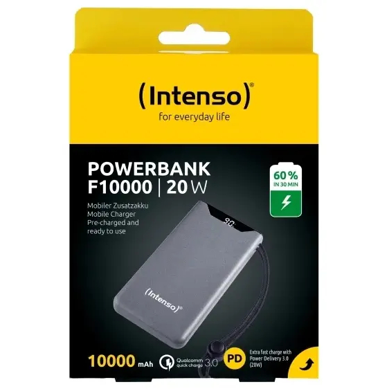 Intenso Powerbank F10000 - Powerbank - 10000 mAh - 20 Watt - QC 3.0 (24 pin USB-C) - USB-C, USB-A - Grå