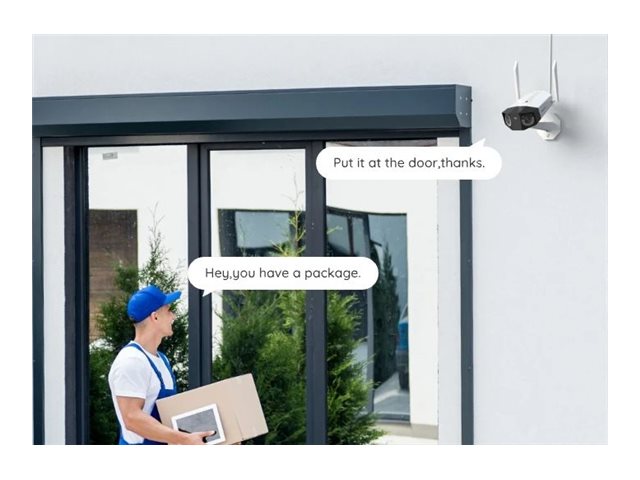 | Egenskaber | E-mail advarsler, infrarød skære filter, Kæledyrsdetektion, Push Notification, Time-Lapse optagelse, nulstillingsknap, indbygget sirene, dobbelt objektiv, Color Night Vision, Vehicle Detection, bevægelses detektion, omgående notifikation, 180° panoramisk visningstilstand, Person Detection, 12 videostreams, indbygget spotlys (560 lumen) |