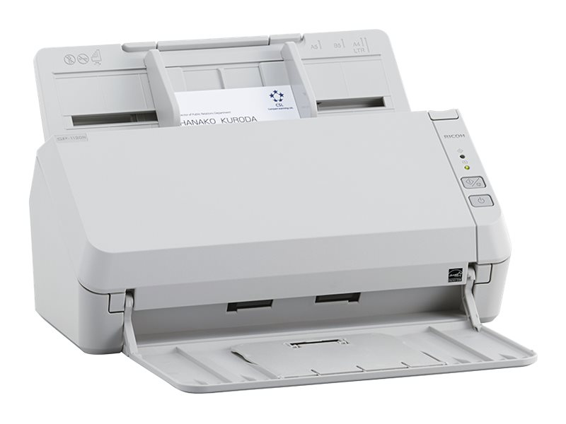 Den kompakte SP-1130N kan placeres på et skrivebord eller i receptionsområder, hvor pladsen er begrænset. På trods af sin lille størrelse er den udstyret med en bremserulle til præcis sideseparation og en ultralydssensor, der registrerer flere fremføringer, så brugerne kan scanne deres indhold uden frygt for potentielle problemer.