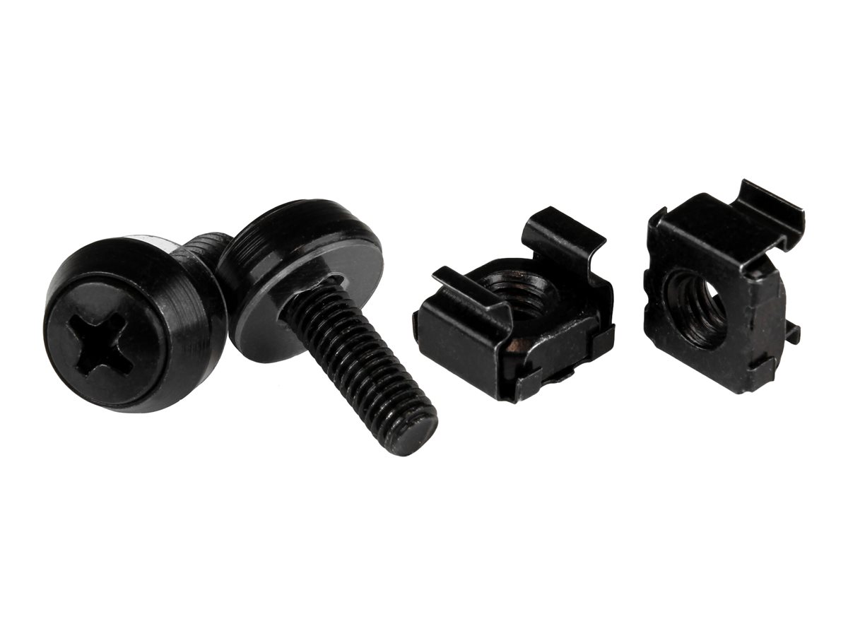 StarTech.com 50 Pack 10-32 Server Rack Cage Nuts and Screws with Washers, Rack Mount Hardware Kit, Network/IT Equipment Cabinet Clip/Captive Nuts & Bolts for Square Rack Holes, Black, TAA - 50-Pk 10-32 Cage Nuts (CABSCREW1032) - Skruer og møtrikker for rack - sort - regering GSA, føderal stat - TAA-kompatibel (pakke med 50) - for P/N: RK1219WALHM, RK1219WALHMR, RK1219WALHR, RK1219WALLMR, RK1219WALLR, RK2236BKFR