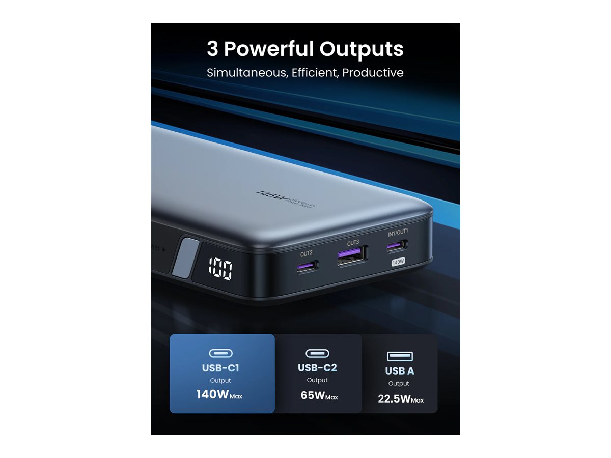 UGREEN 145W Two-way Fast Charging Powerbank - Grå - 25000 mAh